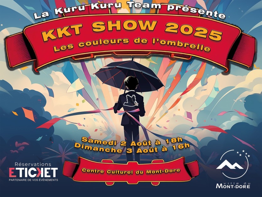 - Les couleurs de l'ombrelle, spectacle de la Kuru Kuru Team, sera sur la scène du Centre culturel du Mont-Dore samedi 2 août à 18 heures et le dimanche 3 août à 16 heures. Un spectacle plein de poésie mêlant la culture asiatique traditionnelle et moderne. Tarifs : de 1 500 F à 2 500 F. Réservations sur la billetterie du Centre culturel du Mont-Dore.