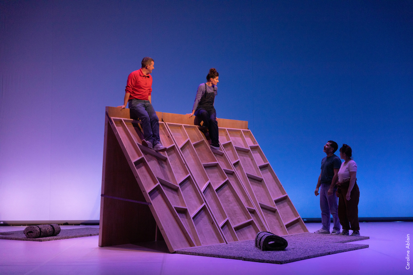 Le spectacle Justice. s du Joli collectif, est sur la scène du Centre culturel Tjibaou. Photo Caroline AblainLe Joli Collectif donne deux représentations de son spectacle Justice. s en salle Sissia, au centre culturel Tjibaou, les 3 et 4 mai à 19 heures. Inspiré et nourri par un travail de l’équipe en Nouvelle-Calédonie, mais aussi en Bretagne, au Québec, à Athènes et Genève, Justice·s est un récit collectif sur scène, suivi d’une installation vidéo documentaire "Le Grand Tour" et de son prolongement virtuel sur le web "Cartographie sensible". Au fil d’une discussion pour tenter de définir le juste, la justesse ou l’injustice, quatre personnages plongent dans ces questions trop grandes pour eux en quête d’un sentiment façonné par l’intimité, la géographie, les cultures. Tarifs : de 800 à 1 500 F. Informations et réservations sur eticket.nc.