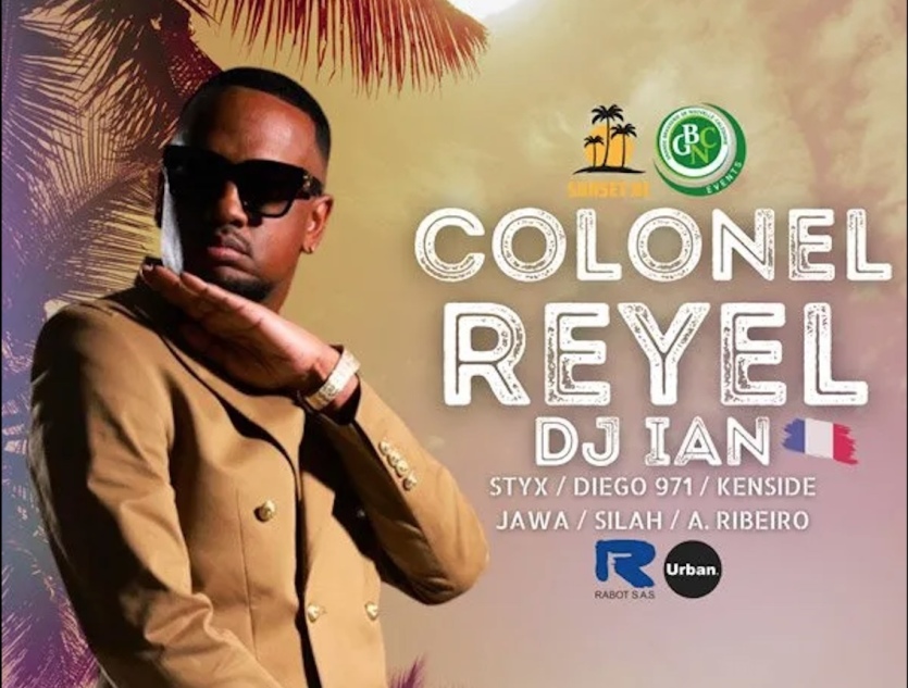 Colonel Reyel est en concert ce soir au On the Beach, et demain à l’île aux Canards. Photo Sunset NC / GBNC eventL’artiste Colonel Reyel est en concert au On the Beach ce samedi soir, accompagné de son DJ Ian, puis des DJ locaux Styx, Silah et Jawa. À partir de 20 heures. Tarif : 4 100 F. Renseignements et réservations sur tickets.nc.