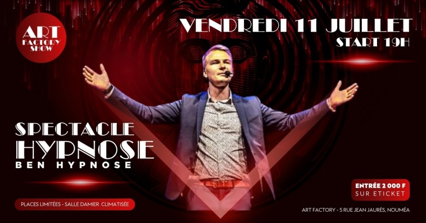 - Spectacle d'hypnose avec Ben Hypnose à l'Art Factory, vendredi 11 juillet à 19 heures. tarif : 2 000 F. Réservations sur Eticket.nc.