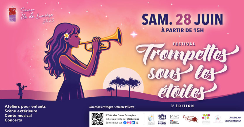 - Festival Trompettes sous les étoiles au Conservatoire de musique et de danse de Nouvelle-Calédonie. Une après-midi et soirée de musique, d'ateliers, d’initiation, de contes pour petits et grands, le samedi 28 juin. Tarifs de 1 600 F à 2 500 F. Réservations sur Eticket.nc.