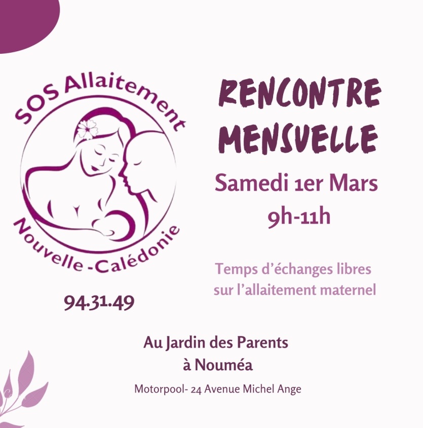 l’Association SOS Allaitement reprend ses rencontres mensuelles pour évoquer l’allaitement, de 9 heures à 11 heures, au Jardin des parents. Gratuit, inscription sur la page Facebook de l’événement. Renseignements au 94 31 49. 24, avenue Michel-Ange.