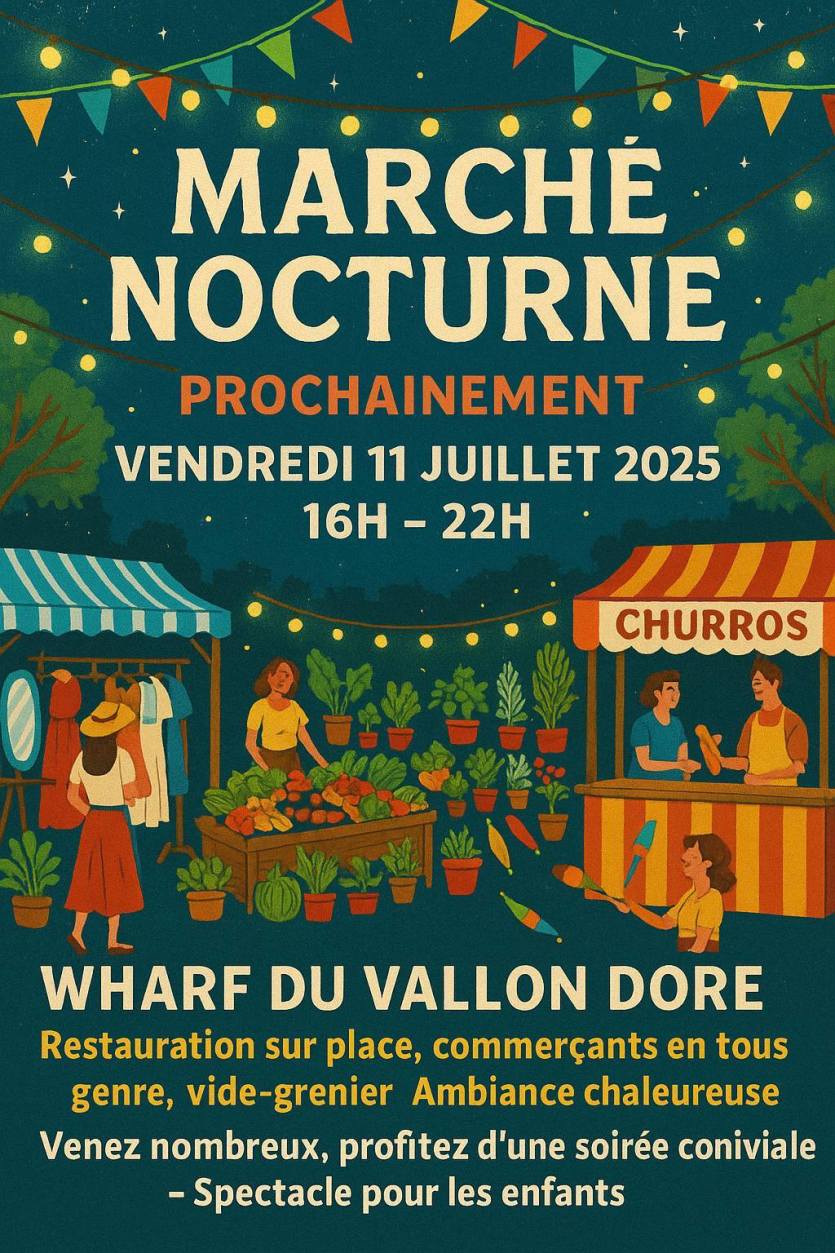 Un marché est proposé au Wharf du Vallon-Dore de 16 heures à 22 heures. Restaurations, stands divers, animations… Entrée libre et gratuite.