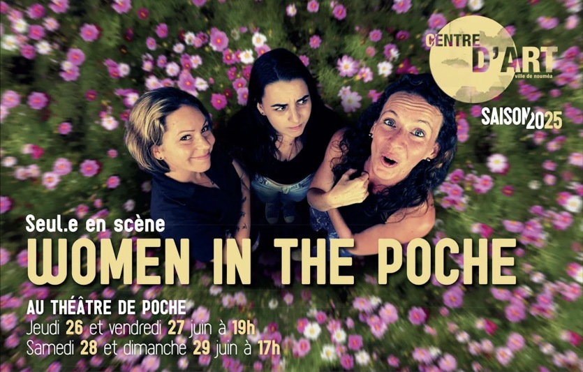 regard unique sur la société. Ces 3 seules en scène – en un seul spectacle – sont une bulle de partage et de connexion. Rendez-vous à 17 heures. Tarifs : de 1 600 F à 2 500 F. Billetterie au centre d’Art du mercredi au vendredi de midi à 16h30 et en ligne sur tickets.nc. Renseignements au 25 07 54. Centre d’Art, 6 Boulevard Extérieur (Faubourg Blanchot).
