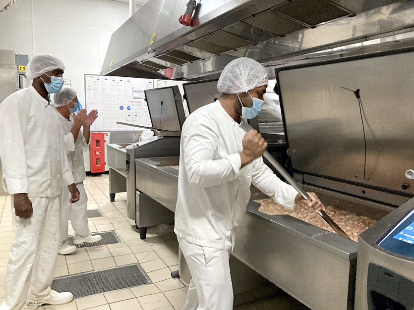 - Baptiste Gouret | Crée le 30.10.2023 à 06h16 | Mis à jour le 30.10.2023 à 07h16ImprimerLa société Newrest cuisine 15 000 repas par jour, dont une grande partie est réalisée dans les cuisines situées au 4e Kilomètre. Photo Baptiste GouretAugmenter de 25 % la part des produits locaux dans nos assiettes, c’est la grande ambition de la nouvelle mandature de la Chambre d'agriculture et de la pêche, soutenue par le gouvernement. Pour y parvenir, la restauration collective, et notamment les services de cantine, jouent un rôle primordial. Reportage dans les cuisines de Newrest, où l’objectif fixé est de composer ses 15 000 repas par jour de 30 % de produits locaux.