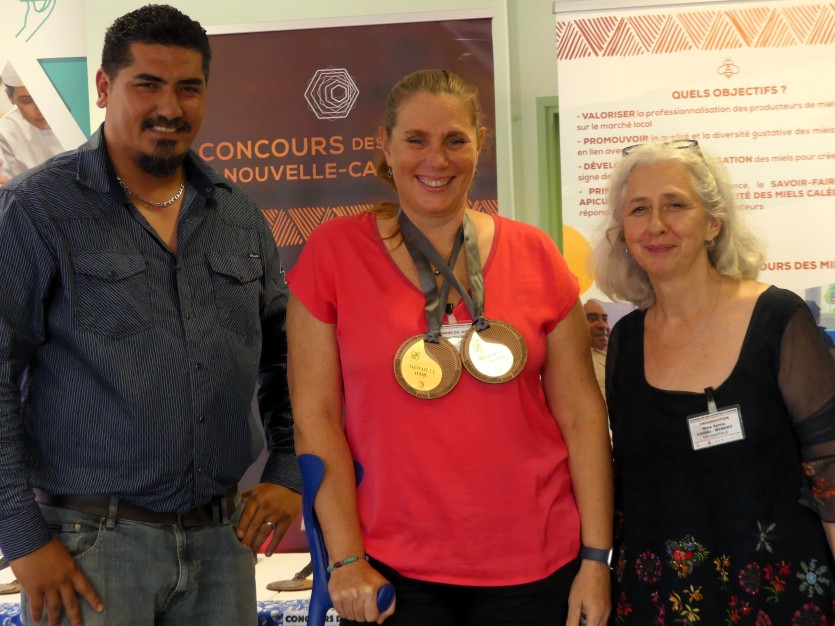 Caroline Faivre (au centre), détentrice de 300 ruche de Plum à Boulouparis, a remporté deux distinctionsCatégorie Toutes fleurs - Grande Terre