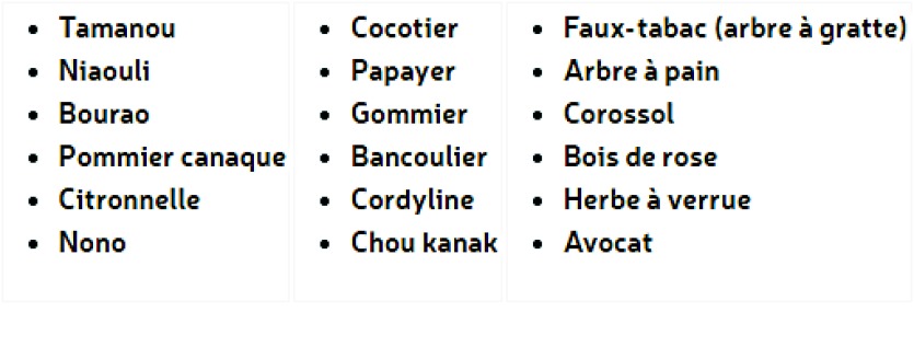 Citronnelle, tamanou, niaouli, pommier kanak, faux-tabac… Ces documents sont une mine d'informations sur les vertus de ces essences locales, sur leurs caractéristiques botaniques, sur les remèdes que l'on peut préparer avec, mais aussi sur les usages particuliers dans la médecine traditionnelle kanak ou encore les précautions d'emploi.