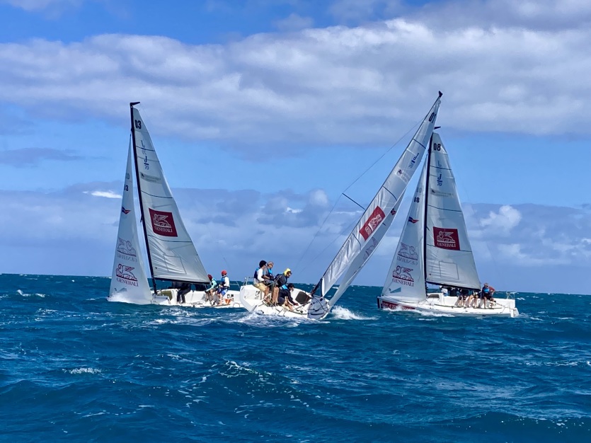Le CNC organisait une nouvelle régate, samedi en baie des Citrons, dans le cadre de son Challenge Monotype. Photo CNCSamedi après-midi, le Cercle nautique calédonien (CNC) organisait la sixième régate de son "Challenge Monotype". Ce sont 31 régatiers, soit sept équipages, qui se sont affrontés en baie des Citrons, lors de quatre manches dans un vent qui soufflait entre 16 et 18 nœuds. Après de belles manœuvres, de belles batailles, de beaux surfs sous spi avec des pointes de vitesse aux alentours des 15 nœuds, et des équipages prêts à en découdre, c’est l’équipage de Vincentimètre, skippé par Vincent Trinquet, qui l’emporte devant l’équipage des Kicheurs, de Tom Picot, suivit de l’équipage Sponsor Wanted, de Feliphé Minier.