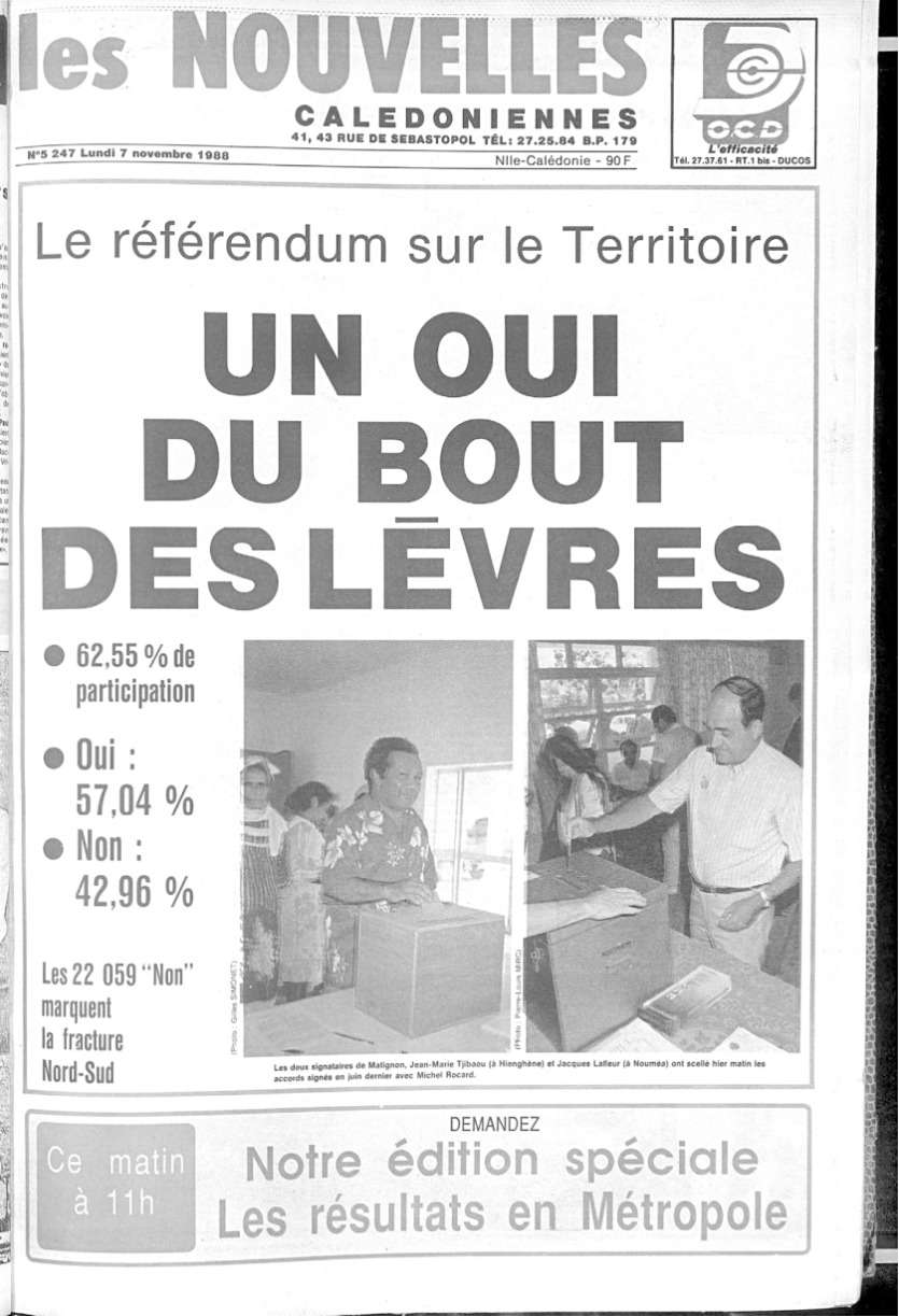 - | Crée le 11.07.2021 à 19h05 | Mis à jour le 11.07.2021 à 19h20ImprimerAnnée 1988 - Référendum Accords de Matignon Photo Nikita Hoffmann