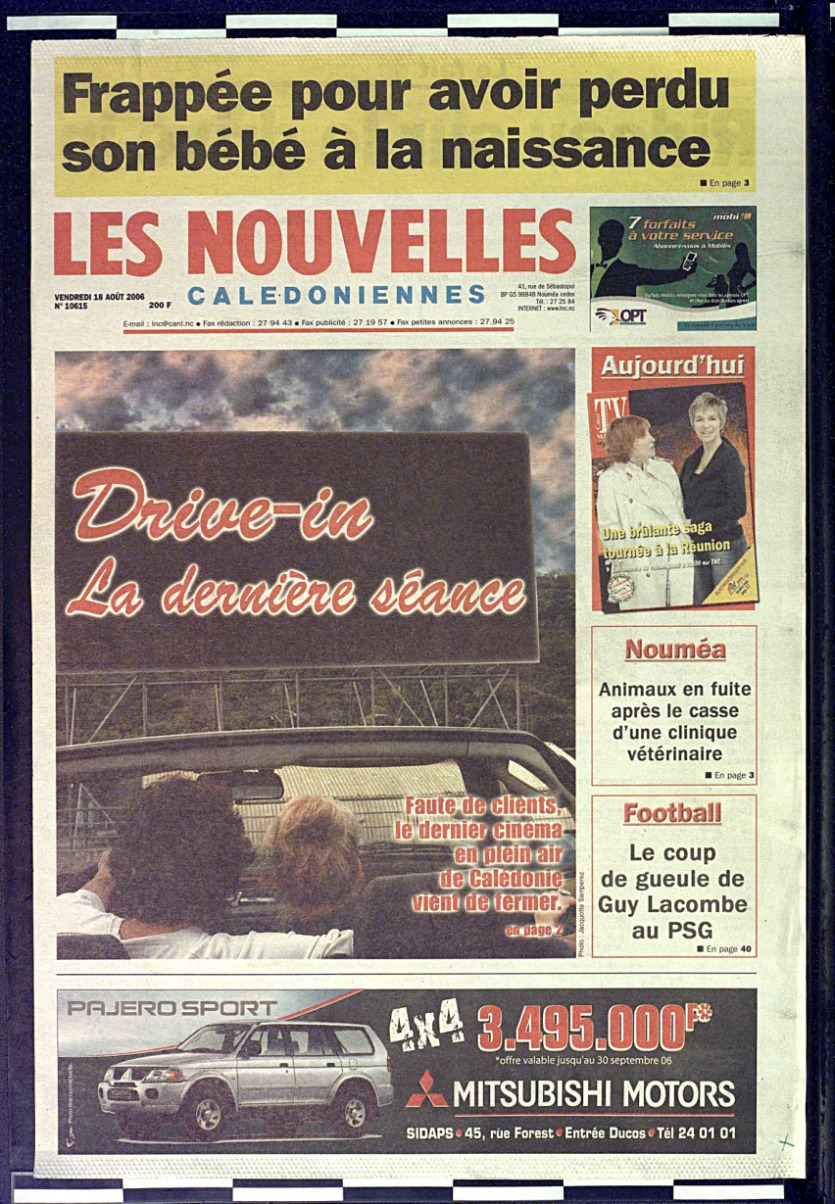 - Joanna Jullien | Crée le 05.08.2021 à 20h20 | Mis à jour le 12.08.2021 à 10h48ImprimerLa Une des Nouvelles : dernière séance au drive-in de Pont-des-Français Photo Archives LNC