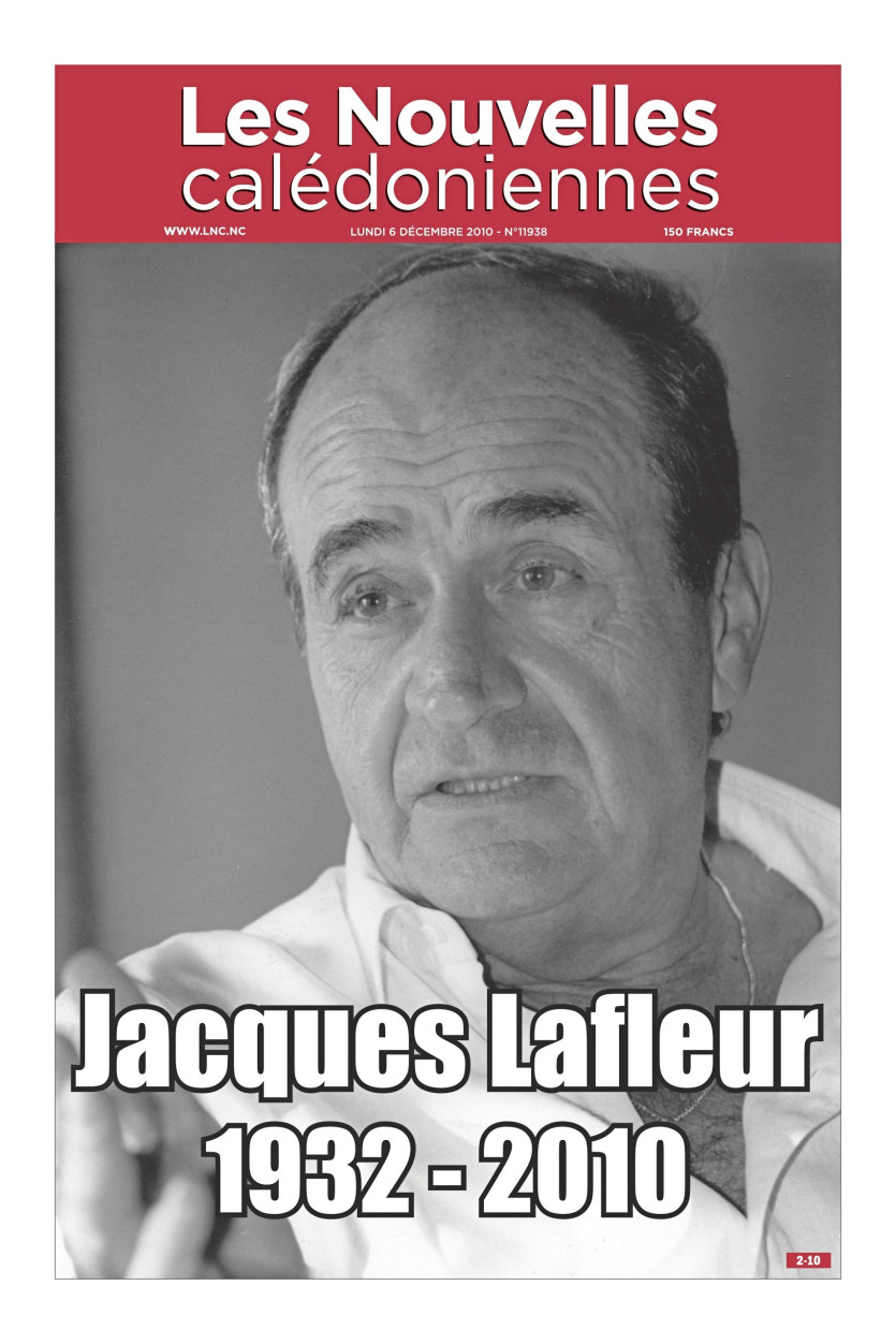 L'année se termine évidemment avec une grande tristesse et la disparition, le 4 décembre, de Jacques Lafleur qui avait reçu, le mois précédent, la Colombe de la paix de l'Unesco. Les Nouvelles font une édition spéciale et les réactions sont publiées sur plusieurs éditions, jusqu'aux émouvantes obsèques, le 11 décembre.