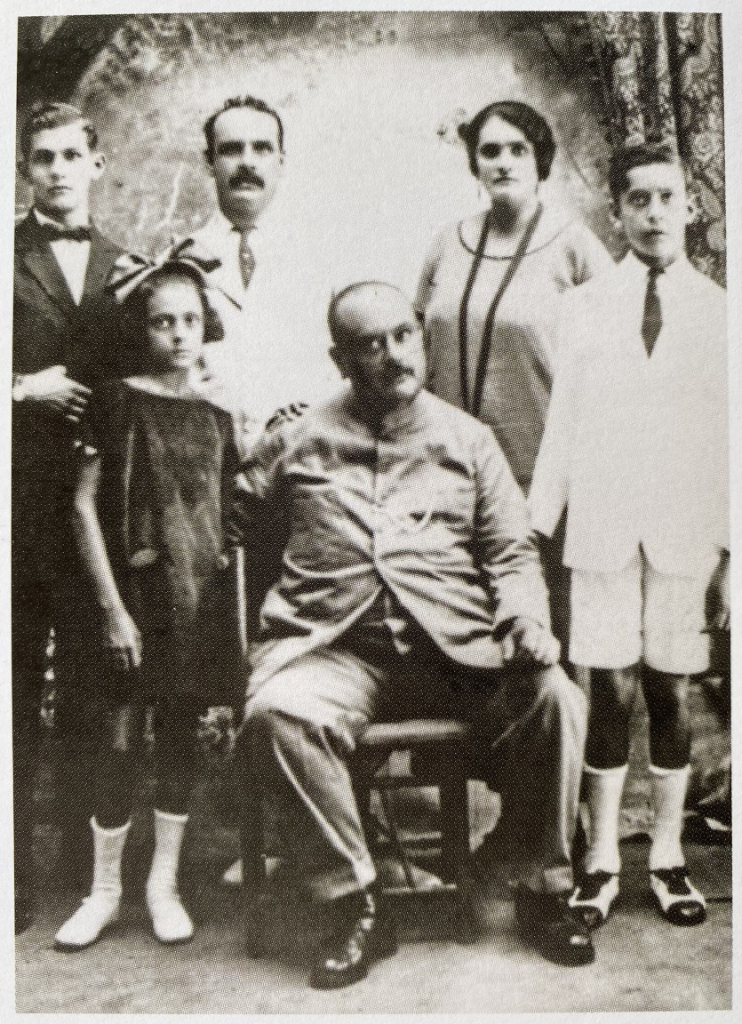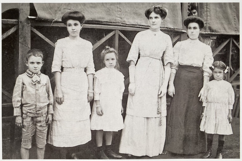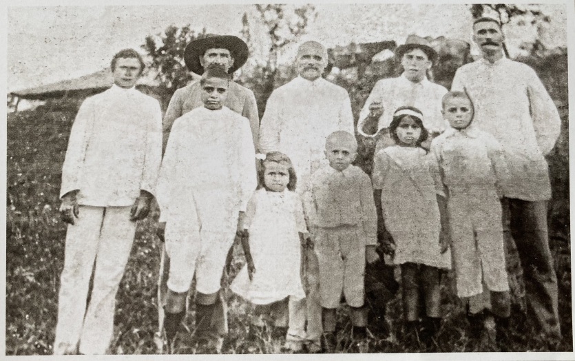 La famille Tournier. Au centre : Félix Tournier, le père. Au premier rang (de gauche à droite) : René Papon, Marcelin, Marcelle, Félix dit Coco, Marthe et Honoré.
