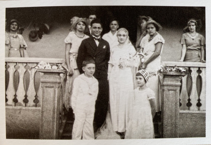 Mariage de Marcelin Tournier et Marthe Rousseau à la maison Tournier, à Nindiah (Houaïlou). On aperçoit derrière les mariés, à gauche Louise et à droite Marcelle, les jeunes sœurs de Marcelin.