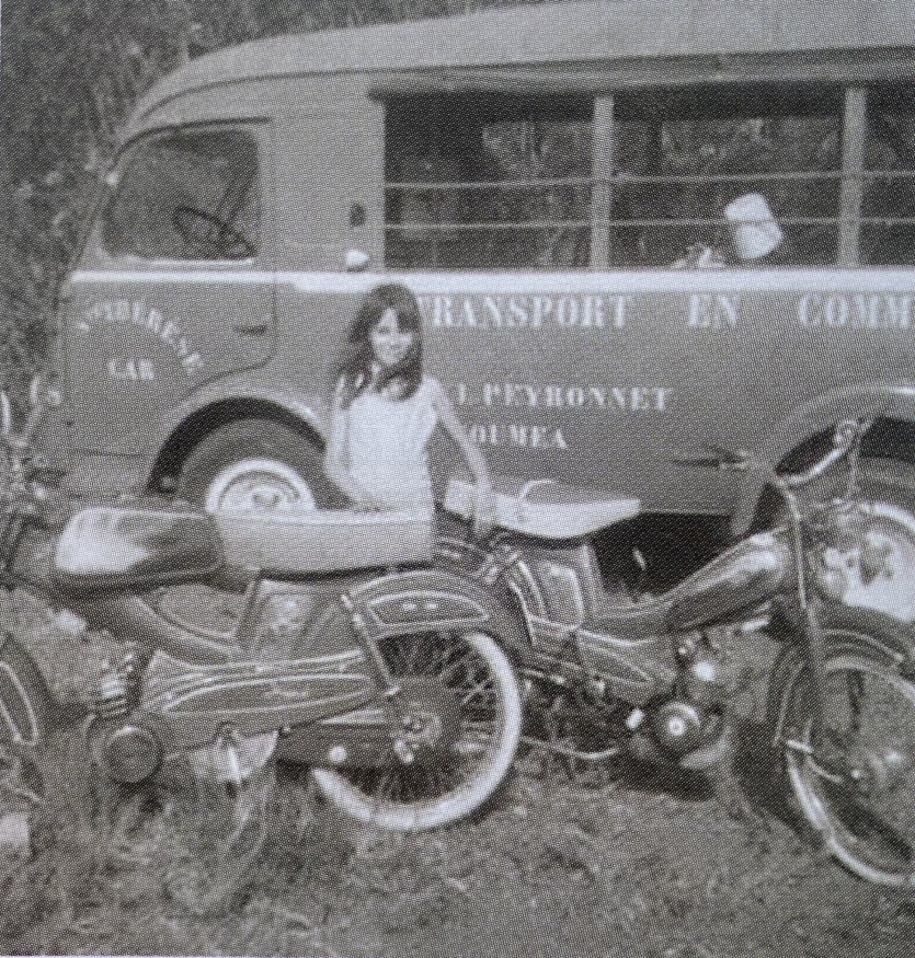 Marie Marguerite devant le bus de son père Victor. Après avoir été employé, Victor, le petit-fils de Rosalie, s'est mis à son compte.Note