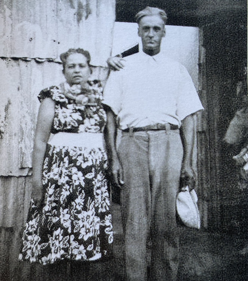 Amédée Pinsat et sa femme Alphonsine née Ville, les grands-parents de Martial. Amédée, premier fils de Joseph, naît le 21 juin 1908 à Bourail, et épouse Alphonsine, née en 1912. Il devient cantonnier à Nassirah et décède en 1990.L'année suivante naît Amédée (il porte le même prénom que son grand-père) puis suivent Angèle, Maurice, Eugénie (épouse Queneville), Isidorine, Auguste, Augustine (épouse Barthe), Victorine (épouse Roy), Alexandre, Jeanne et Lucien en 1930.