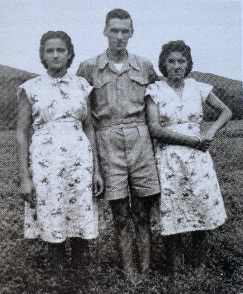 Alexandre, né en 1924 (à l'extrême gauche), et Maurice (à l'extrême droite) né en 1912, deux fils de Joseph.