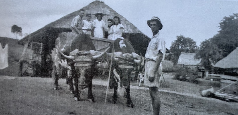 Les enfants de Joseph : Maurice au premier plan et, dans la voiture à bœufs, Auguste et sa femme Juliette, Alexandre et Angèle.