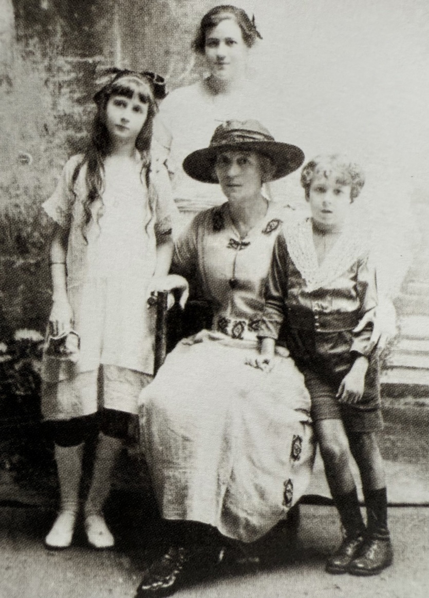 Blanche Jouvent, l'épouse de Georges Rolland, avec ses enfants : Marguerite (derrière), Marie-Rose (à gauche), Albert (à droite).