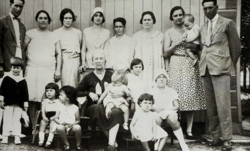 Les enfants de Georges Rolland. De gauche à droite: Georges l'ainé et son épouse Fernande Caspar, Marguerite (épouse Camille Creugnet), Marie-Rose (épouse Louis Desmoulières), Albert (le père d'Alain, futur époux de Marie-Louise Javelier) et Madeleine (épouse Charles Anger), Edmée Varin et son mari Emile. Au centre, au milieu de ses petits-enfants, leur mère, Blanche Jouvent (1876-1949).De son union avec Blanche naissent six enfants dont Albert, le père d'Alain, et Émile, engagé volontaire au Bataillon du Pacifique à 17 ans. Il revient de la guerre gazé et médaillé après plusieurs citations. "