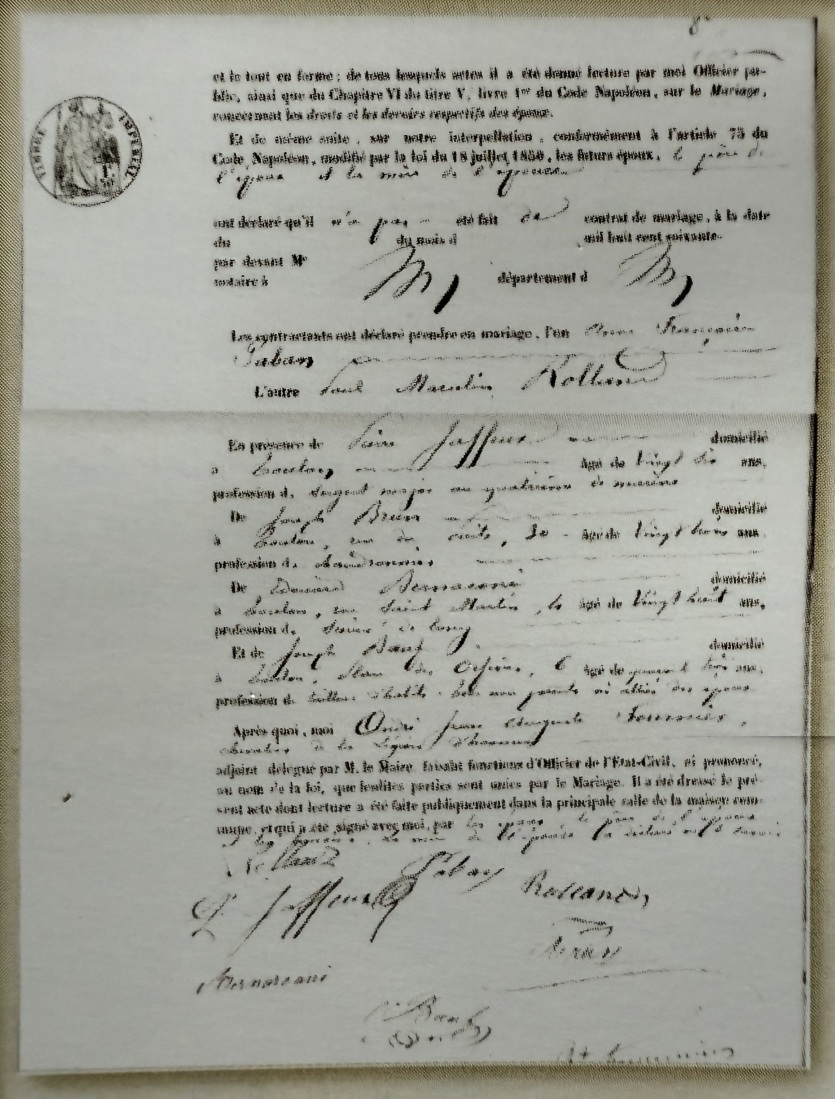 Acte de mariage de Paul Marcelin Rolland et Anne-Françoise Paban. Crédit photo : Archives départementales du Var.En 1884, il est nommé surveillant chef de deuxième classe puis accède à la première classe en novembre 1886. À partir de 1885, il est chargé de la police indigène de Magenta et reçoit un deuxième témoignage de satisfaction de la part du gouverneur "Pour l'activité, le zèle et le dévouement qu'il a déployés dans la poursuite des évadés [...] une battue dans les centres de Païta, Coétempoé et Boulouparis. Cette opération, qui n'a pas duré moins de quinze jours, a amené l'arrestation de nombreux évadés et une diminution dans le nombre des évasions.
