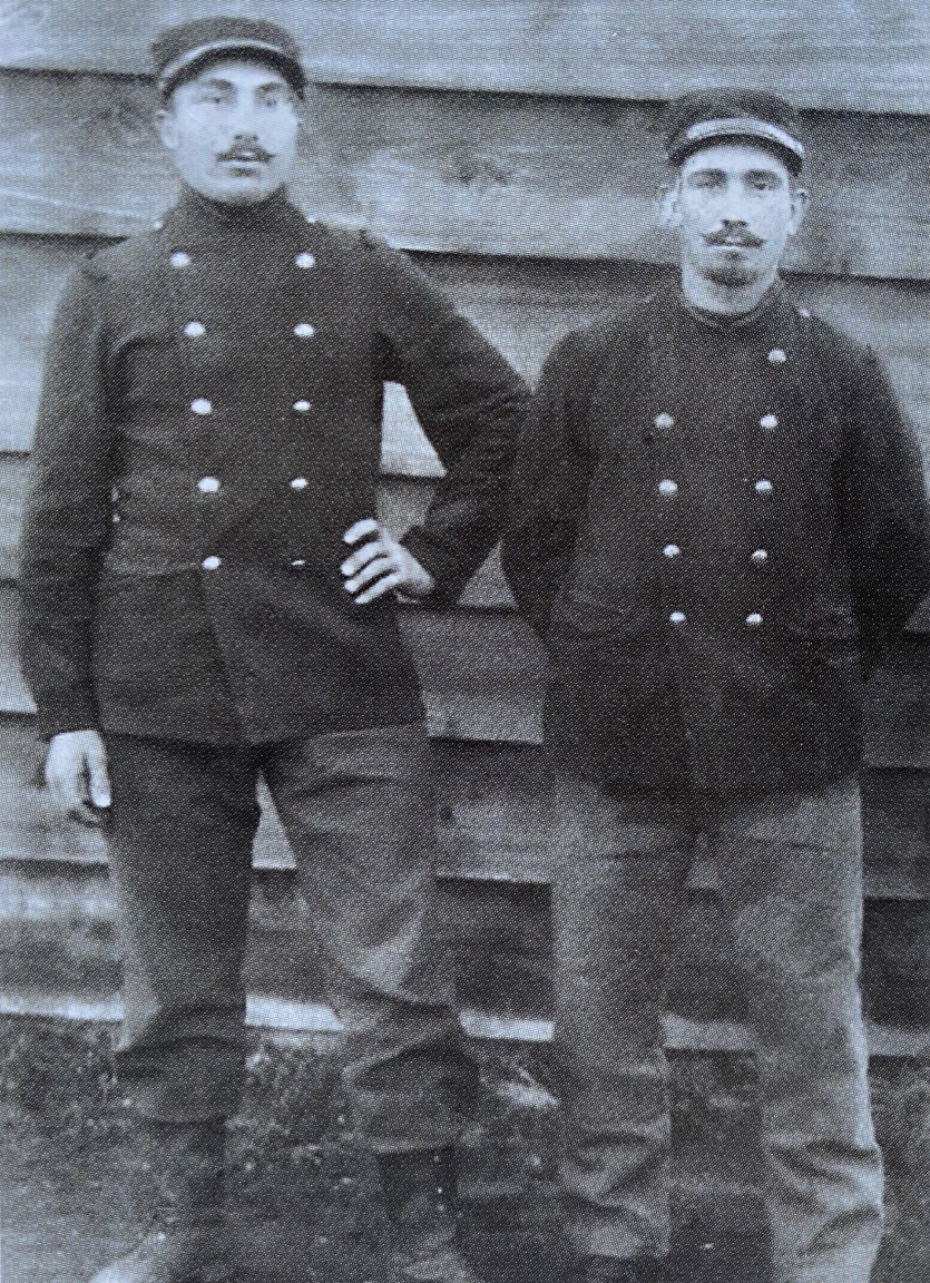 Deux des trois fils de Nicolas à la guerre. Paul et Félix. Les deux frères embarquent ensemble à destination de la France par le Sontay le 23 avril 1915.