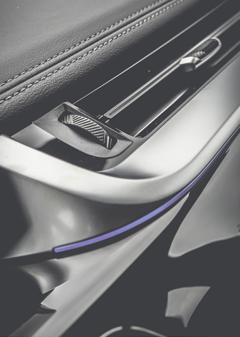 L’immense Curved Display accueille le combiné d’instruments de 10,25 ''et l’écran multimédia d’une diagonale de 10,7''. Le levier de vitesse disparaît au profit d’un petit sélecteur situé au bout de l’accoudoir central, et cette approche minimaliste s’étend à quasiment toutes les commandes physiques qui sont désormais accessibles via l’écran central. La climatisation est automatique.