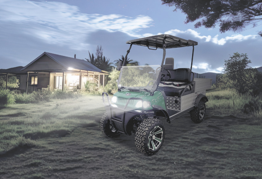 L’utilitaire électrique est équipé de puissants feux LED. Photo Jean-Marie Chatelain / AMBAvec son tarif très bien placé et son éligibilité à la défiscalisation pour les professionnels, avec sa facilité d’entretien et sa faible consommation en énergie, sans oublier le confort de son silence, le Turfman 700 conviendra parfaitement aux clubs de golf, aux exploitations agricoles ou aux centres équestres, comme le Yala Ranch qui a eu la gentillesse de nous accueillir.