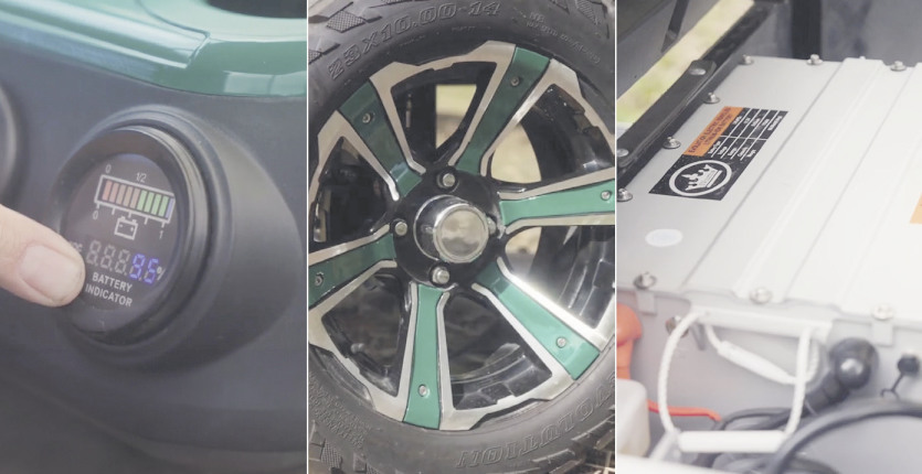 La motorisation 2 roues motrices du Turfman 700 dispose d’une puissance de 6,3 kW couplée à une batterie lithium-ion 48V de 110 Ah qui requiert un temps de charge de 4 à 5 heures sur une prise domestique normale. La vitesse maximum est limitée à 40 km/h, l’autonomie est de 60 km à 20 km/h. Peu d’entretien et une optimisation évidente des coûts énergétiques, voilà qui donne à réfléchir.