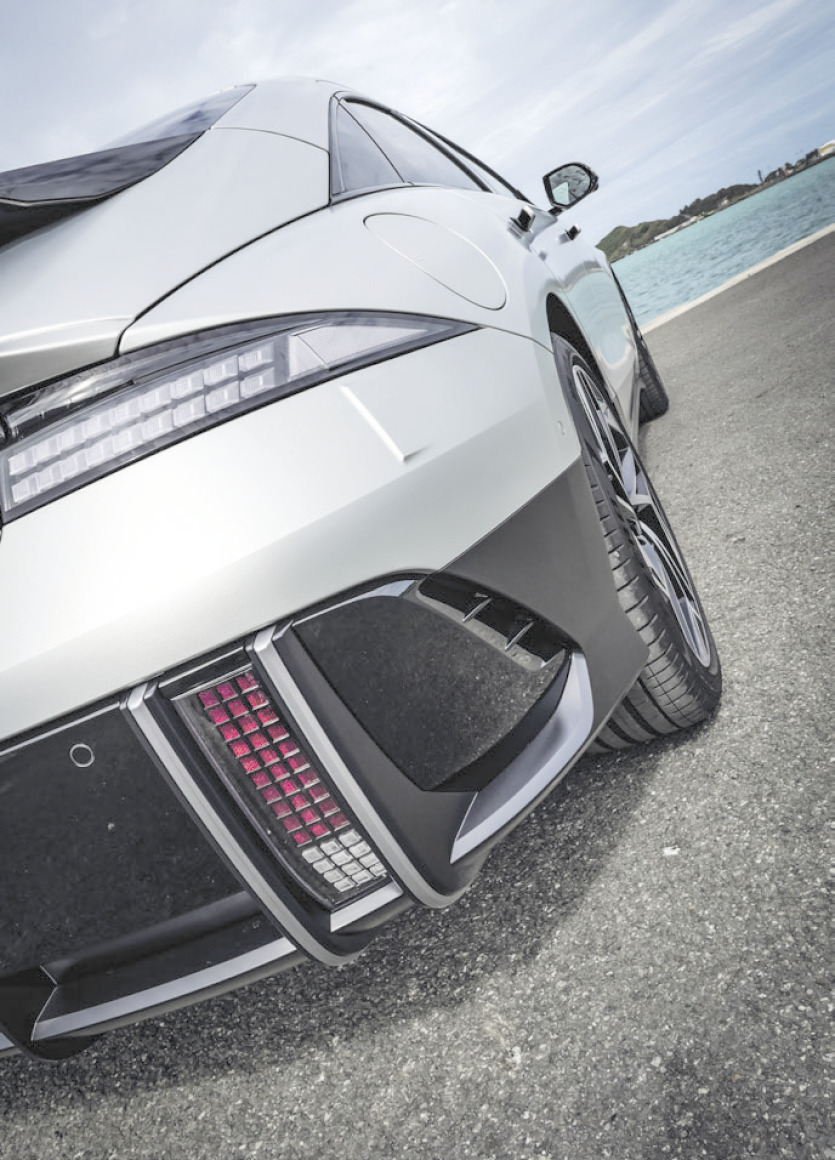 Le bouclier noir fait léviter la coque. Photo Jean-Marie ChatelainConstruit sur la même plateforme que le Ioniq 5, le Ioniq 6 impose sa propre identité. Il confirme la stratégie du constructeur coréen de proposer des modèles qui ne déclinent pas les uns des autres mais s'additionnent au sein d'une même gamme. Son esthétique aussi audacieuse que pertinente lui procure des performances électriques très concurrentielles. Elle rappelle qu'un bon design se doit d'abord d'être fonctionnel avant d'être beau. C'est donc en toute logique que le modèle a remporté les 3 premiers prix aux World Car Awards 2023 à New York : voiture de l'année, voiture électrique et design automobile !
