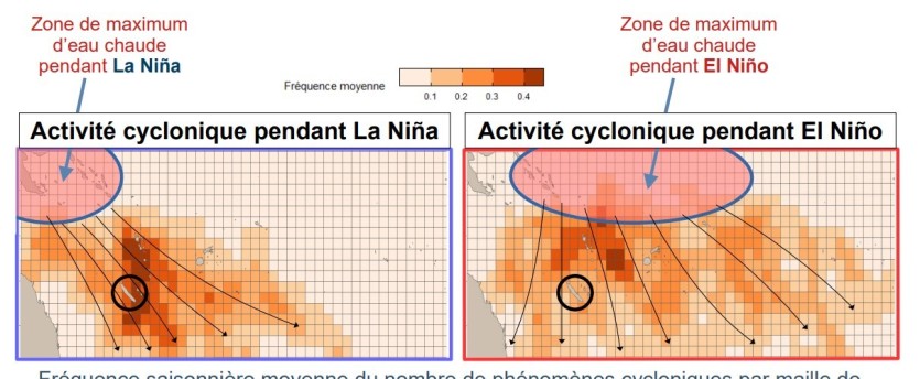 "Chez nous, du fait de ces eaux plus fraîches, on devrait se retrouver avec une activité qui est amoindrie, c’est-à-dire que les cyclones vont essentiellement circuler sur le centre du bassin Pacifique Sud", précise le climatologue.