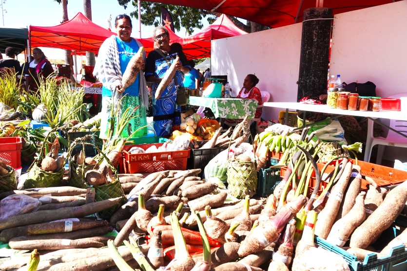 Lise Goroatu et Selena Gorou ont apporté près d’une tonne de tubercules produits dans la vallée de Tchamba, à Ponérihouen. Photo Anthony TejeroUn peu plus loin, la commune voisine de Ponérihouen compte également tirer profit de cette belle affluence. À l’image du stand des mamans de la vallée de Tchamba, qui sont venues avec une tonne de tubercules. "On a les ignames sucrées, les tarots de montagnes ou d’eau, les currys sauvages, liste Lise Goroatu, qui en milieu de matinée, pensait avoir déjà écoulé 200 kg de produits. En ce moment, on prépare de nouveau les champs et on propose donc aussi des boutures d’ignames à replanter. On a encore beaucoup de stock, c’est une très bonne année pour les tubercules et on aura encore plein de marchandises à proposer pour la fête de l’igname de Ponérihouen le week-end prochain." Le message est passé.