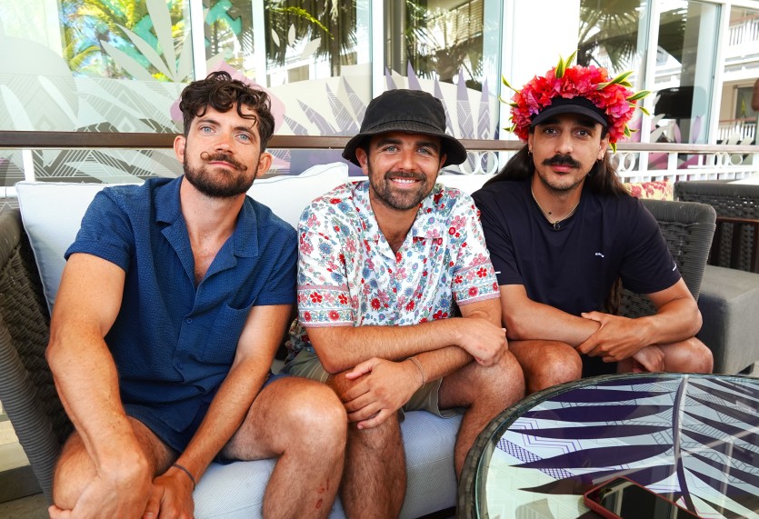 Kaya, bassiste, Pietre, guitariste, Soub, percussionniste, du groupe Deluxe. Photo Anthony Tejero"Ça fait très plaisir de revenir dans cet endroit qui est juste paradisiaque et de retrouver un public vraiment extra et très chaud. On se rappelle très bien nos deux prestations ici, parce qu’il s’est toujours passé des choses assez extraordinaires. La première fois qu’on a joué au Kuendu Beach, tous ceux qui étaient là s’en souviennent, on a dû évacuer le site parce qu’un des piliers avait commencé à se fissurer tellement le public était dingue. L’année suivante, il s’est passé la même chose au 1881, on a pété les planchers qui étaient par-dessus les piscines. Et au MV Lounge, l’ambiance était dingue. On est reparti de l’île en se disant : "Mais punaise, qu’est-ce qu’ils ont ici ? Ce sont des fous furieux !". Le public était déchaîné. Ce sont vraiment des bons souvenirs de concert. On a vraiment hâte de jouer et de revivre des moments intenses avec le public.
