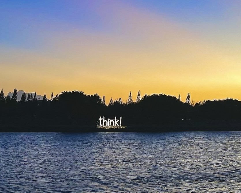 Chaque soir, à la tombée du jour, l’îlot artificiel s’illumine. Mais pas de décorations de Noël en vue. En lieu et place, trône une installation monumentale, dont les lettres atteignent trois mètres de haut. Think !, qui signifie littéralement "penser" en anglais peut également se traduire par "réfléchir" ou encore "méditer". Après Hope !, en septembre dernier, en guise de message d’espoir après les exactions, le collectif HTX porté par l’association Mwâ Unesco récidive, avec toujours l’envie d’interpeller les Calédoniens à travers l’art.