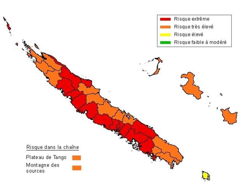 Source Météo France NCDe telles conditions augmentent grandement le risque de propagation des feux de brousse. C’est pourquoi toute la Nouvelle-Calédonie (à l’exception de l’île des Pins) est placée en risque très élevé à extrême aux feux de forêt, ce mardi.