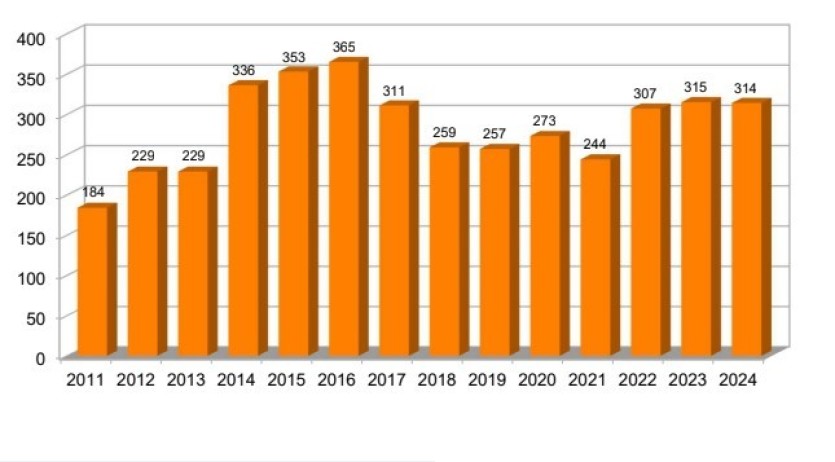 En 2024, le COSS a coordonné 314 opérations, un chiffre stable par rapport à 2023, où 315 actions avaient été recensées. Autrement dit, les effets des émeutes (synonymes de faible activité en mer entre mai et juillet) n’ont pas joué dans les statistiques, notamment parce que les secours ont été particulièrement sollicités en début d’année, lors des vacances scolaires.