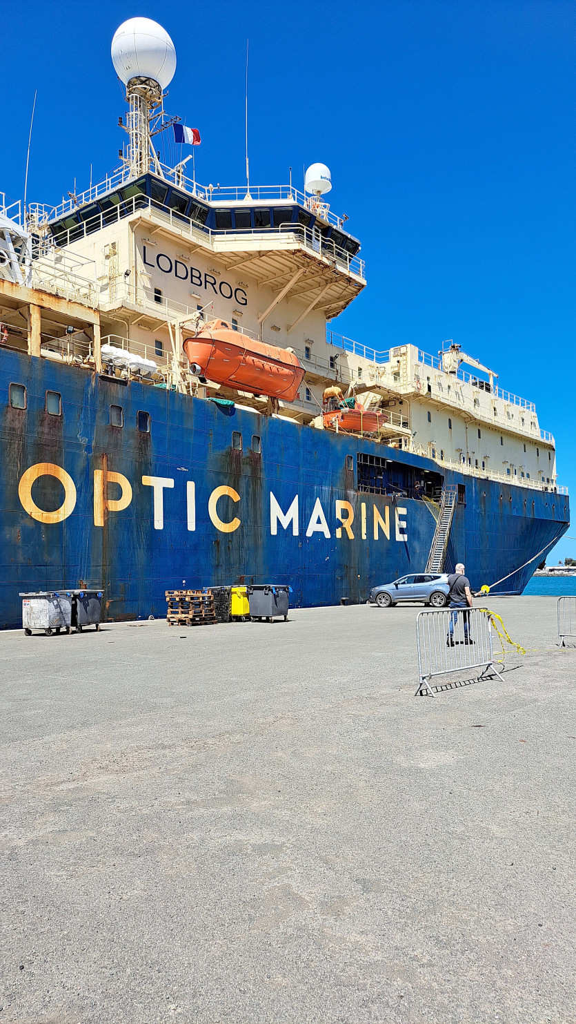 Le navire Lodbrog, câblier de 140 mètres de la société OMS, est arrivé le 11 octobre dans les eaux calédoniennes pour la réparation du câble sous-marin. Photo OPT-NCPas d’incidence sur la connexion internet