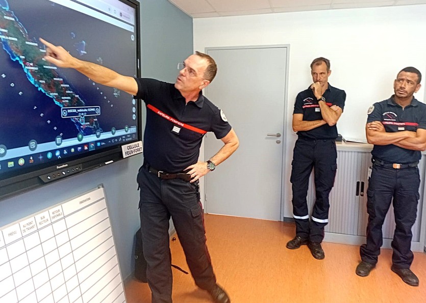 "Cette cellule est là pour coordonner et recenser en temps réel l’ensemble des feux qu’il y a sur le territoire. Le but est aussi de pouvoir répondre aux sollicitations des centres de secours, afin d’envoyer les moyens que nous avons à notre disposition, tant humains et matériels, qu’aériens avec nos hélicoptères bombardiers, résume le lieutenant Philippe Buama, en charge du dispositif. Les centres de secours nous contactent pour nous signaler un feu. Et selon les besoins, soit on engage nos moyens, soit on garde le sinistre sur nos bases de données et on suit l’évolution du feu à distance."