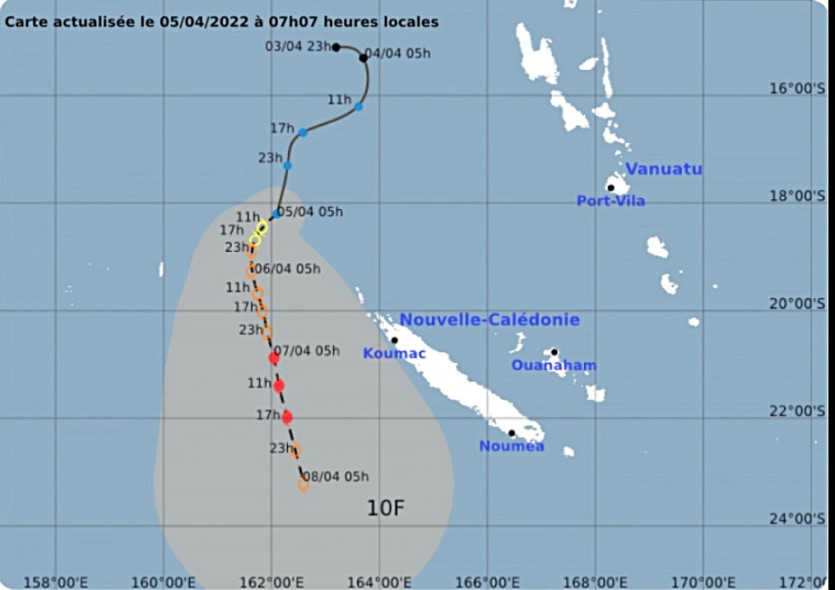 - La dépression tropicale 10F, formée au nord de la Nouvelle-Calédonie, devrait entraîner des précipitations abondantes, de mardi à jeudi, en particulier sur la côte Est et le Grand Nord.Le phénomène n'est pas encore nommé que déjà tout le pays a été placé en pré-alerte cyclonique dès lundi, à 18 heures. Et ce, alors que la dépression tropicale faible 10 F se trouvait à 350 km au nord de Bélep. Si Météo-France a établi une première carte de trajectoire, les prIl vous reste 88% de l'article à découvrir.Cet article est réservé aux abonnés.