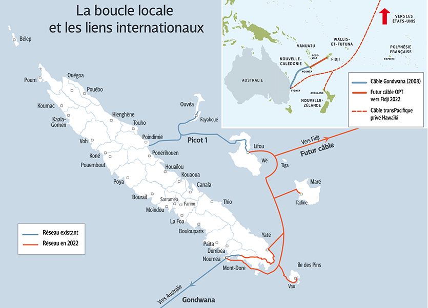 - C’était devenu un serpent de mer. Souvent débattu, jamais abouti, le projet du deuxième câble sous-marin a connu une avancée significative mercredi lors du conseil d’administration de l’OPT. Alcatel Submarine Networks a en effet été choisi pour relier la Grande Terre à l’île des Pins, Maré, Lifou puis Fidji. L’Internet calédonien se trouverait ainsi sécurisé d’ici 2022.Pourquoi un second câble ? La Nouvelle-Calédonie est actuellement connectée à Internet via un câble sous-marin, nommé Gondwana et appartenant à l’OPT, qui relie la Grande Terre à l’Australie. Un autre câble, le Picot 1, relie à son tour Poindimié à Ouvéa et Lifou. L’îleIl vous reste 97% de l'article à découvrir.Cet article est réservé aux abonnés.