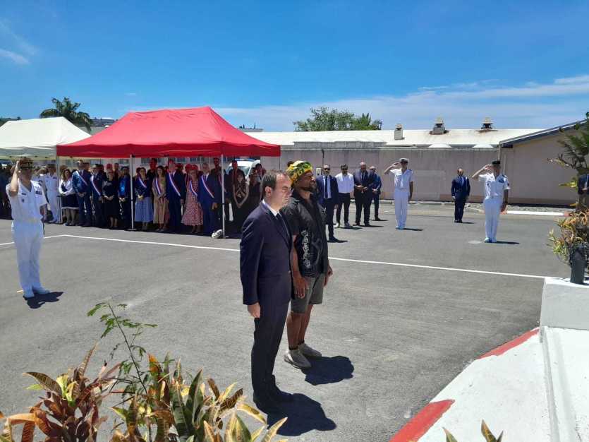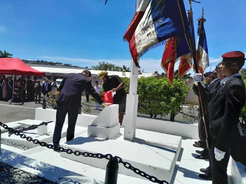 Sébastien Lecornu au côté de Nicolas Koindredi, descendant d’un tirailleur kanak, devant la stèle. Photo Anthony Tejero[10h40] La stèle du Bataillon mixte du Pacifique est dévoilée. Ce nom doit rendre hommage aux tirailleurs du Pacifique. La cérémonie s’est déroulée en présence de Nicolas Koindredi, descendant d’un tirailleur kanak. "C’est une manière de montrer que tout le monde était ensemble dans cette grande pirogue pour la France telle qu’elle est aujourd’hui et de permettre aux jeunes de comprendre qu’on est ensemble sur cette pirogue et à sa place", explique le descendant du tirailleur Isidore, originaire d’une tribu du bord de mer, à Païta.