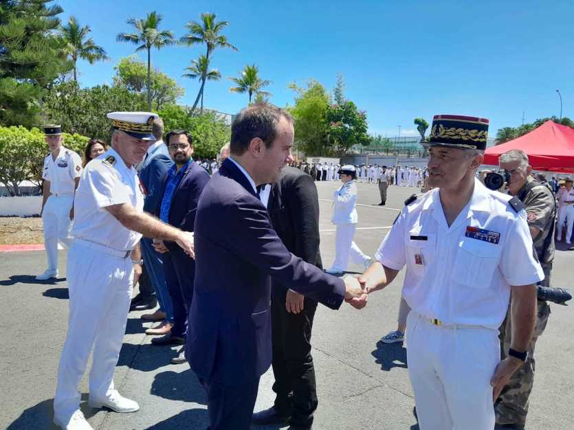 Une convention de promotion des réserves avec la Chambre de commerce et d'industrie de Nouvelle-Calédonie a notamment été signée. Photo Anthony Tejero[12h30] Le quai des patrouilleurs d'Outre-mer de la base navale de Nouméa vient d'être inaugurée par le ministre. Cette installation doit permettre d'accueillir les deux nouveaux patrouilleurs de l'armée. Il a été conçu pour pouvoir également accueillir jusqu'à 4 patrouilleurs des nations alliées. Ce chantier lancé en avril 2022 et achevé en septembre 2023 à notamment nécessité de réaliser un dragage de 16 000 mètres cubes. Coût total de l'opération : 13,4 millions d'euros, soit plus d'1 milliard de francs. Les coraux de la zone ont été transplantés plus loin, précise la Marine nationale.