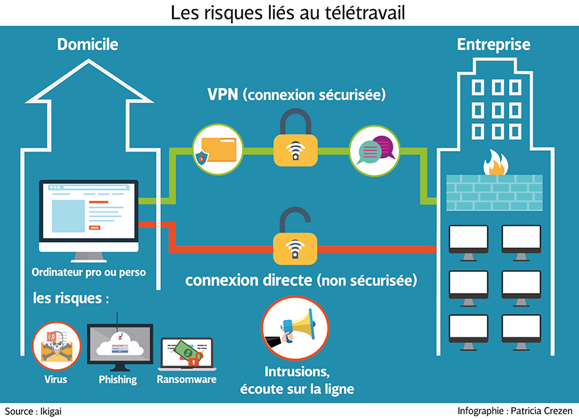 - Gros plan - CRISE DU CORONAVIRUSDe nombreuses entreprises se sont lancées à la hâte dans le télétravail, parfois au mépris des règles de sécurité, constatent des professionnels de la cybersécurité. Les brèches ainsi créées sont susceptibles de provoquer des dégâts importants, à court comme à long terme.Précipitation ? Répondant du tac-au-tac aux exigences de confinement, des sociétés ont mis en place le télétravail en quelques jours, parfois en quelques heures. « Certains ont acheté des ordinateurs portables dans la journée, et les ont mis en service à distance le lendemain, parfoisIl vous reste 98% de l'article à découvrir.Cet article est réservé aux abonnés.