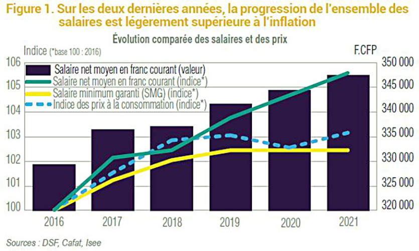 - L'Institut de la statistique et des études économiques (Isee) de Nouvelle-Calédonie vient de publier une note sur les salaires en 2021. Le salaire net moyen, estimé à 348 000 francs, est en hausse de 0,3 % par rapport à 2020. Mais en entrant dans le détail, la crise sanitaire a faussé la donne. Explications.L'étude de l'Isee a été publiée mardi, à quelques jours de l'appel à la grève générale de l'intersyndicale pour une hausse des salaires de 6 % dans le secteur privé. D'après les chiffres de l'Institut, on en est effectivement assez loin. "En 2021, un salarié en entreprise tous secteursIl vous reste 89% de l'article à découvrir.Cet article est réservé aux abonnés.