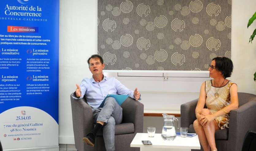 - Anne-Claire Pophillat | Crée le 11.04.2025 à 08h42 | Mis à jour le 17.04.2025 à 10h20ImprimerStéphane Retterer, président de l’Autorité de la concurrence, et Sophie Charlot, rapporteure générale, lors de la conférence de presse de l’institution jeudi 10 avril. Photo A.-C.P.L’Autorité de la concurrence de Nouvelle-Calédonie a présenté son bilan lors d’une conférence de presse, jeudi 10 avril. En 2024, l’organisme a rendu des avis, sanctionné des pratiques anticoncurrentielles, pris des mesures allégeant les procédures administratives en cas de reconstruction… Si, cette année, le cheval de bataille est la vie chère, l’ACNC indique qu’elle sera sur tous les fronts, celui "des protections de marché, du modèle économique, des télécommunications, etc.".