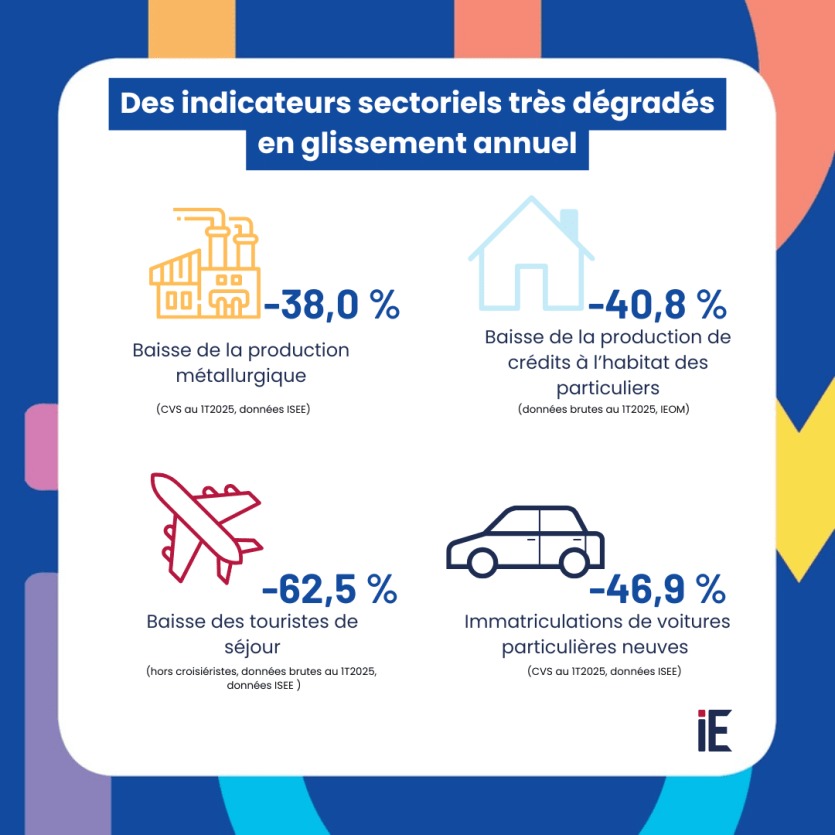 Enfin, concernant le secteur primaire, les indicateurs affichent eux aussi de mauvais résultats : -24,3 % d’abattages de bovins, -32,3 % d’exportations de crevettes et -47,8 % d’exportations de thon.