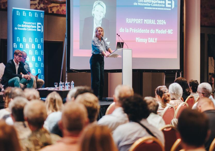 - Anne-Claire Pophillat | Crée le 06.06.2025 à 18h34 | Mis à jour le 16.06.2025 à 14h19ImprimerMimsy Daly préside le Medef depuis février 2021. Photo MedefLe Medef a renouvelé ses instances lors de son assemblée générale jeudi 5 juin pour le mandat des trois ans à venir, jusqu'en 2028. Mimsy Daly, présidente sortante, reste présidente de l'organisation patronale, qui poursuit les chantiers en cours, dont celui "de la réforme fiscale", et se projette sur les discussions qui doivent se tenir à Paris début juillet sur l'avenir de la Nouvelle-Calédonie.