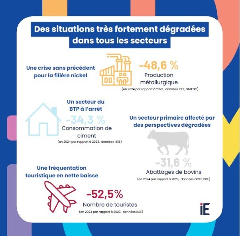 - Baptiste Gouret | Crée le 12.07.2025 à 06h00 | Mis à jour le 26.07.2025 à 18h12ImprimerLes émeutes ont provoqué un net recul de l’économie calédonienne. Le PIB a reculé de 10 et 15 %, affirme l’IEOM dans son rapport 2024. Photo Anthony TejeroL’institut d’émission d’outre-mer a publié en début de semaine son rapport économique annuel. Sans surprise, l’année 2024 marque un net recul de l’économie calédonienne, affectée par les émeutes de mai. Tour d’horizon des principales données connues.