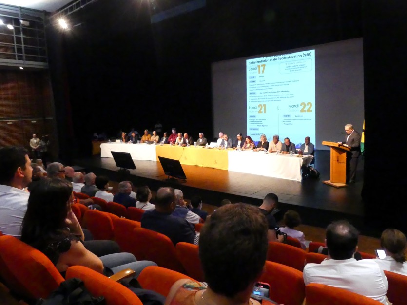 C’est "une étape cruciale pour l’avenir de la Nouvelle-Calédonie" qui a été franchie, ce jeudi 17 octobre, au centre culturel Tjibaou. Devant une salle comble, dans laquelle avait pris place l’ensemble des acteurs économiques, politiques et syndicaux, le président du gouvernement Louis Mapou a ouvert la conférence économique dédiée au plan de sauvegarde, de reconstruction et de refondation (S2R) de la Nouvelle-Calédonie. Elle doit se poursuivre jusqu’à mardi et fixer les grands principes de la transformation du pays.