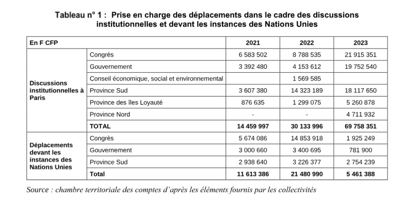 C’est un sujet sensible sur lequel s’est penchée la Chambre territoriale des comptes (CTC) dans un rapport rendu public le 7 août dans le Journal officiel. En réponse à une contribution déposée en 2023 sur sa plateforme des juridictions financières, où n’importe quel citoyen peut proposer des thèmes de contrôle et d’enquête, la CTC a passé au crible les comptes et la gestion des frais de déplacement des élus de la Nouvelle-Calédonie (congrès et gouvernement) et des trois provinces entre 2020 et 2024, mais aussi de ceux du personnel et des membres des institutions et des représentants coutumiers. Un sujet sensible car, dans la période de crise et d’austérité à laquelle sont confrontés les Calédoniens, ces dépenses peuvent parfois paraître indécentes pour le grand public.