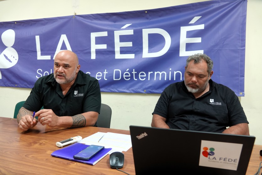 - Baptiste Gouret | Crée le 25.03.2025 à 12h09 | Mis à jour le 26.03.2025 à 14h32ImprimerSteeve Teriitehau, secrétaire général de la Fédé (à gauche), lors d’une conférence de presse organisée ce mardi 25 mars pour présenter le colloque organisé par le syndicat jeudi 27 et vendredi 28 mars. Photo Baptiste GouretOpposé au PS2R du gouvernement, le syndicat avait déjà annoncé qu’il travaillerait à un "contre-plan" davantage orienté sur la lutte contre les inégalités et une meilleure répartition des richesses. Ses contours seront dévoilés jeudi 27 et vendredi 28 mars, lors d’un colloque organisé à l’auditorium de la CCI, à Nouméa.